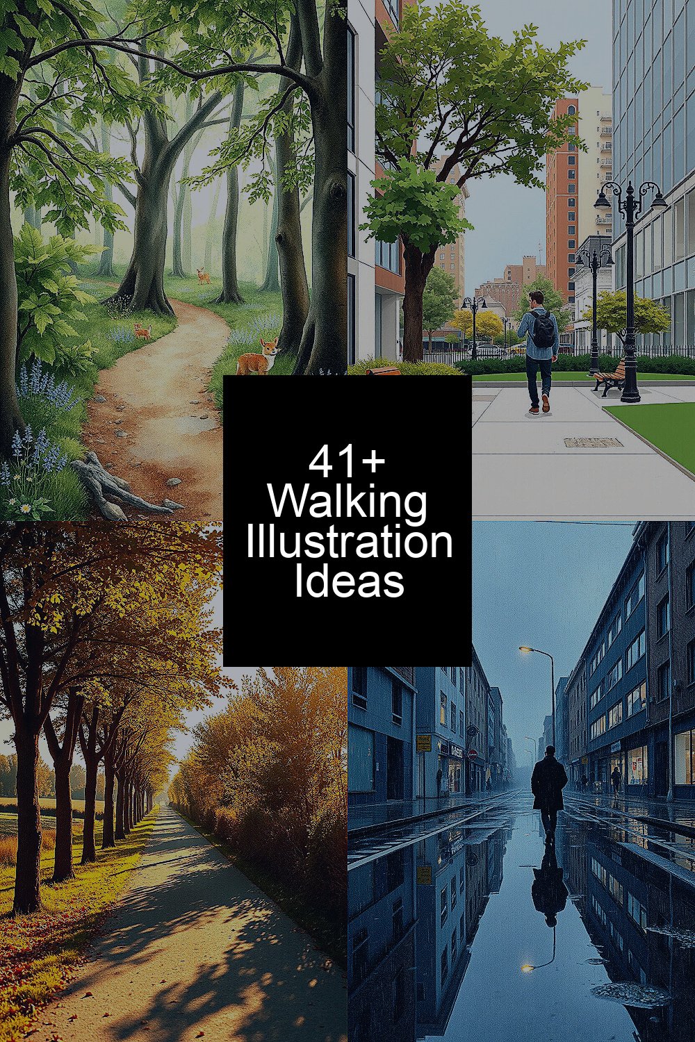 Modest walking illustrations come to life through 42 innovative ideas that spark creativity and invite you to envision unique interpretations of everyday strolls.